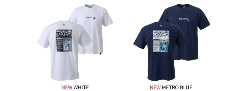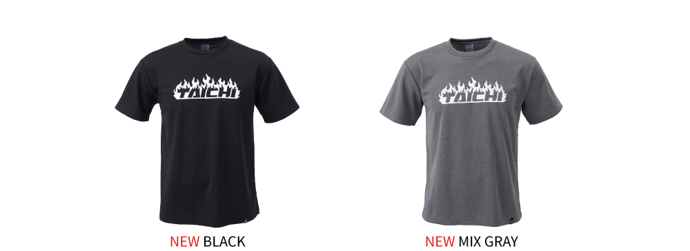 前面に炎モチーフのTAICHIロゴをあしらった、速乾性に優れた化繊素材のTシャツ。
