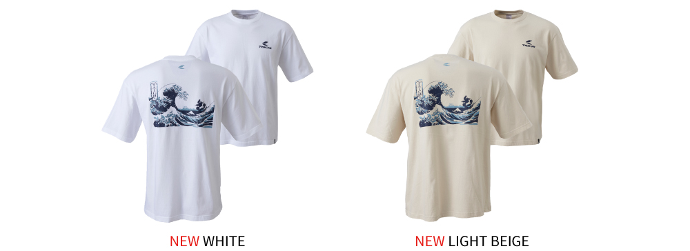 荒々しい波とそれに乗るライダーがモチーフ。ベースは5.6オンスのやや肉厚の生地感で、リラックス感のある少しゆったりしたシルエット。