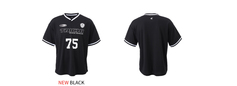 吸水速乾生地を使用し、軽量で通気性に優れたベースボールシャツ。前開き仕様で、背中に大きくロゴを配置しています。