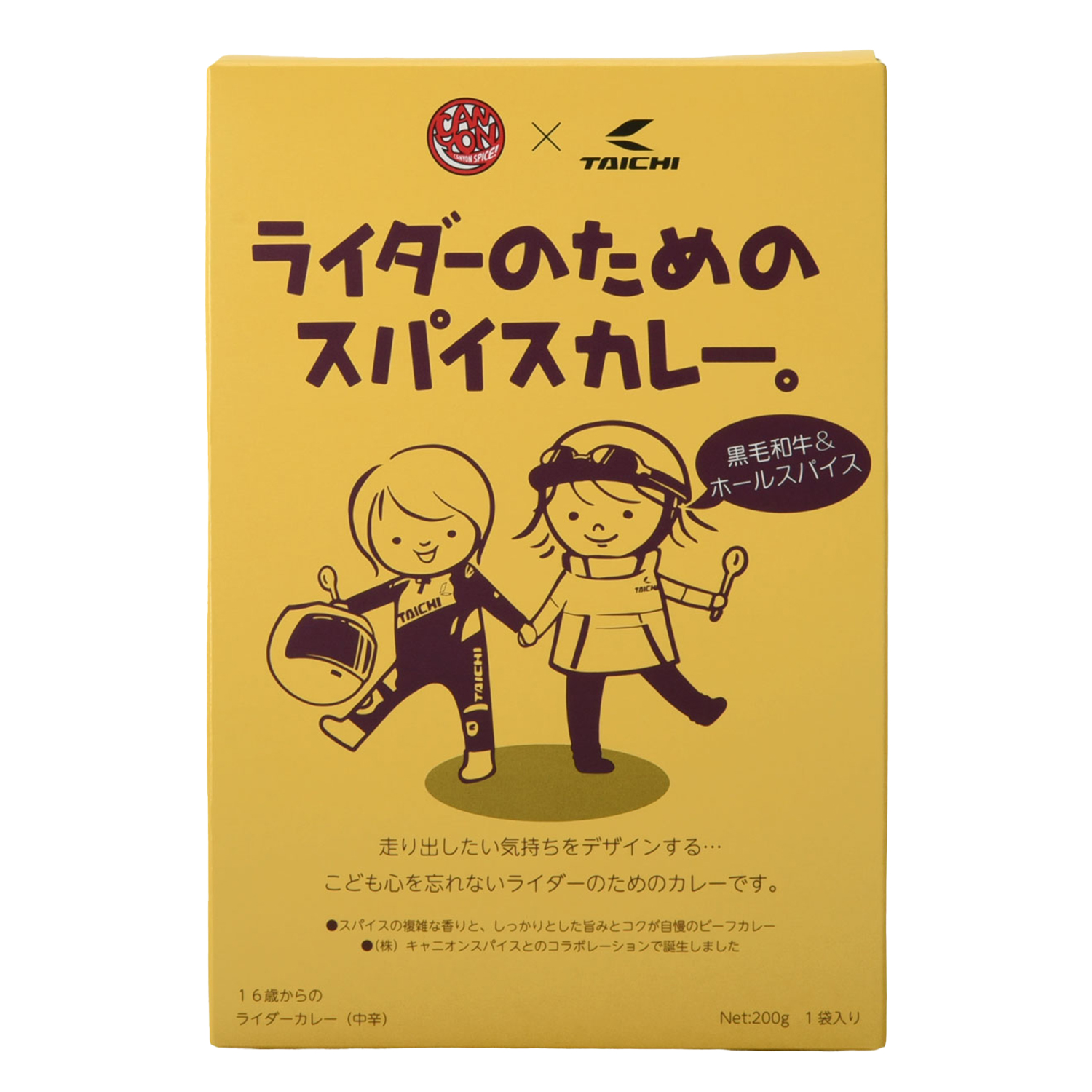 関西の老舗「キャニオンスパイス」社とのコラボ企画。パッケージは同社の製品「こどものためのレトルトカレー」をモチーフにした、デザインです。
