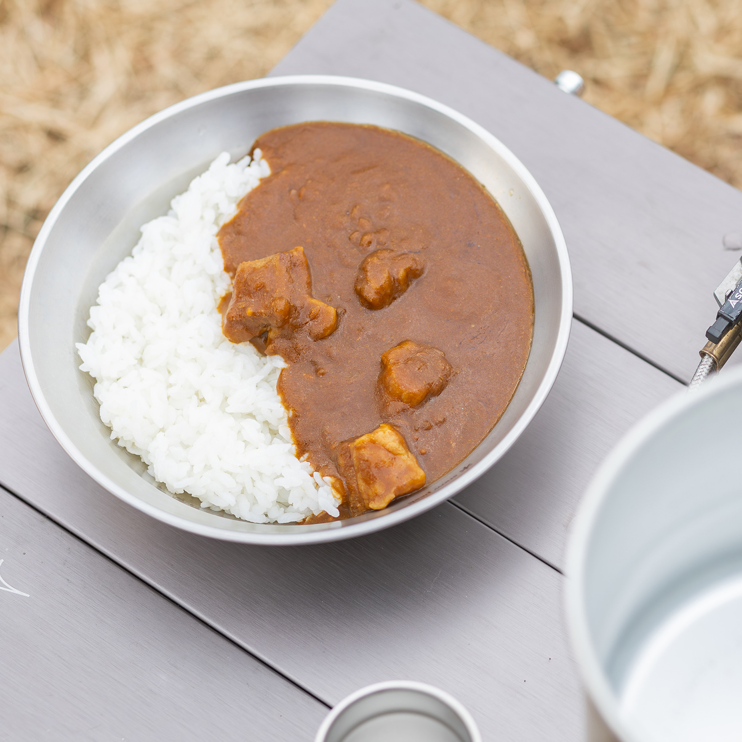 TAICHIが目指しているのは、ギアの開発だけではありません。バイクに乗る時間がもっと楽しくなる「きっかけ」も作っていきたい。そんな想いを形にしたのが、このカレーです。バイクに積みやすく、準備も片付けも簡単。 たどり着いたその場所で、バーナーに火を灯し、湯気の向こうに広がる景色を楽しむ。