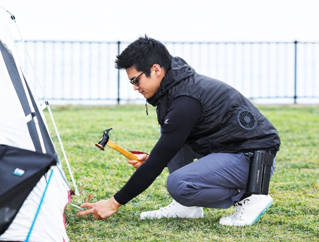 ファン付きベストと合わせることで、走行風がなくてもリキッドウインドは猛暑で活躍します。夏場のキャンプや釣り、そして愛車の洗車など、熱さに耐えながらやってきた趣味に、是非ともお使いください。